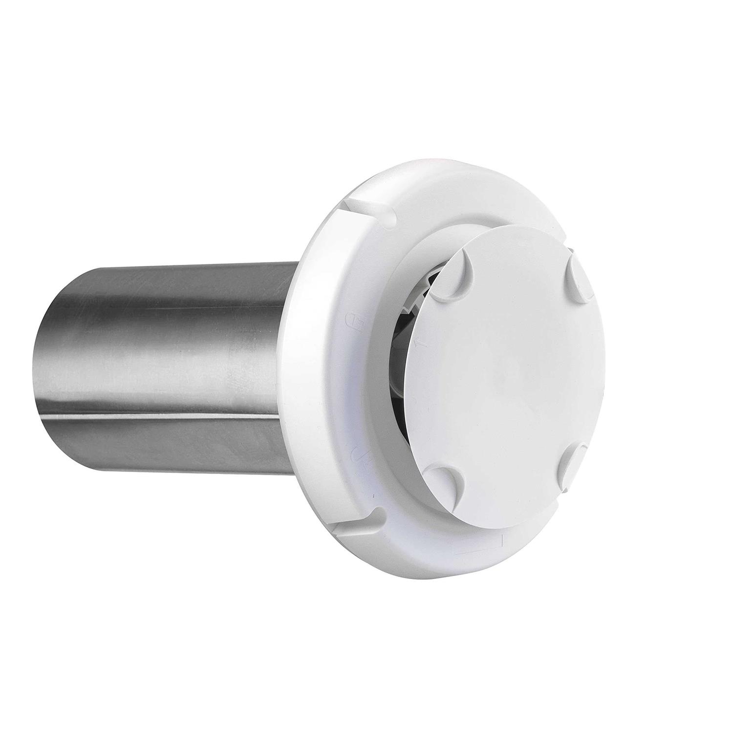 Dundas Jafines ProShield Exhaust Hood features a round design that is unique to the market. The innovative spring loaded damper system offers complete noise control with no flapping louvers or dampers in harsh weather conditions. Pests will also no longer be an issue as the damper system prohibits pests or rodents from entering the vent. The center shield of the cap can also be removed for easy cleaning of lint and debris in the duct. When the appliance is turned on, the air forces the damper open allowing the air to exhaust. When the appliance is turned off, the damper is pulled to a secure, closed position. Additional features include a molded caulk edge that helps to maintain a clean caulking application during installation and a snap on pipe to cap assembly that eliminates the need for lint trapping staples. This ProShield product has a UV resistant coating to prevent the cap from discoloring and is paintable to match the exterior of your home. It can also be used in conjunction with brick, concrete or siding. ProShield Exhaust Hoods are compatible with Dundas Jafine J-Channels and are ideal for bathroom fan venting, dryer venting and kitchen range hood venting.