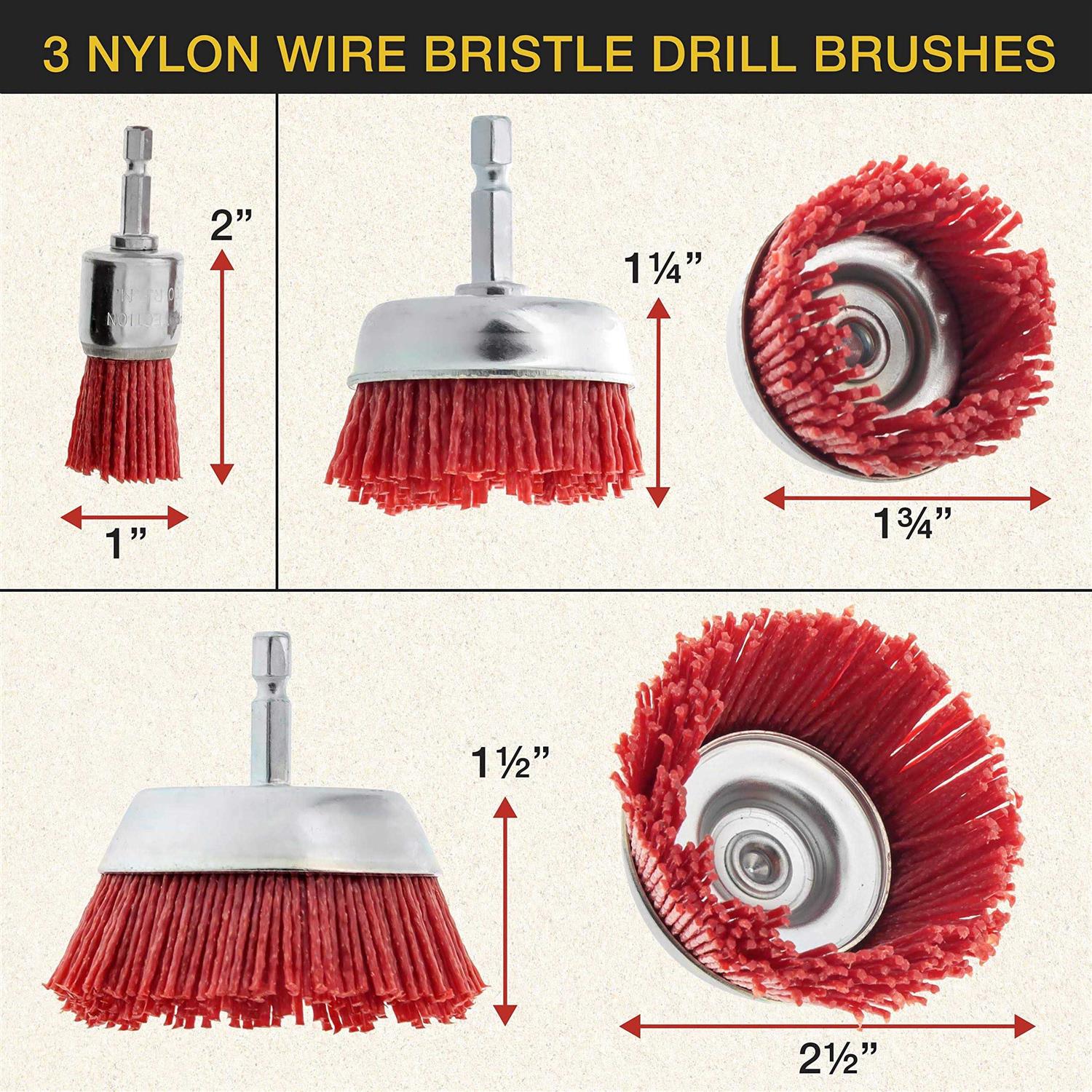 Dura-gold 6 Piece Abrasive Filament Nylon Wire Bristle Drill Wheel and Cup Brush Set – Coarse Sanding Scuffing, 1/4″ Drill Sh
