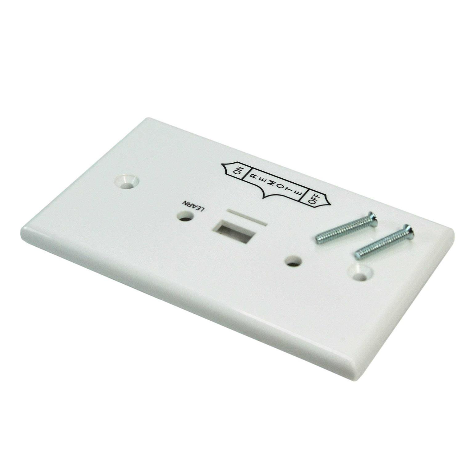 - ▼ Includes: Remote transmitter, receiver box, wall mount cover plate, screws, slide switch, wires with connectors