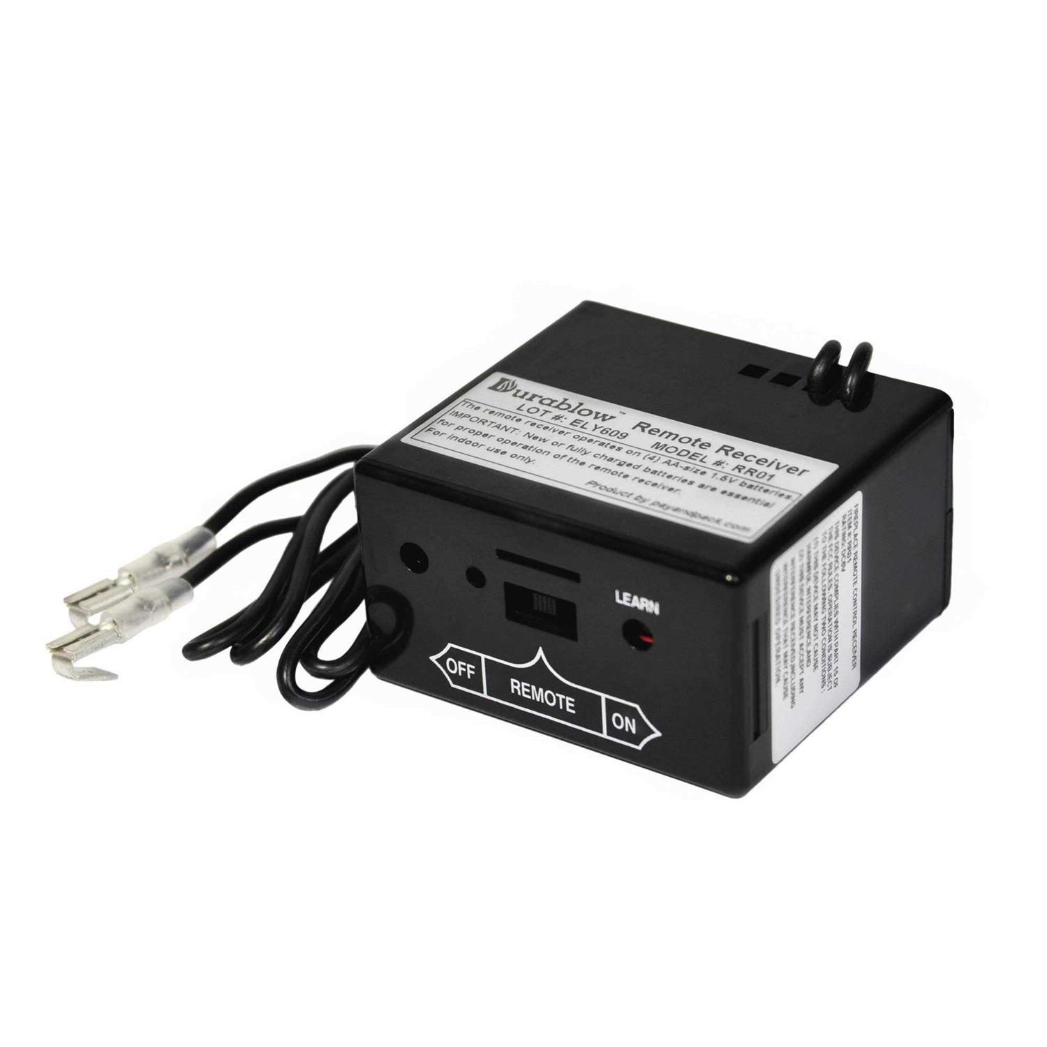 ATTENTION: This device is NOT a power supply/Ignitor unit. (No voltage output itself, but passing voltage from your fireplace thermopile for safety reason). Please connect it with power source or circuit in series if using it as a switch. Durablow battery powered R.F. + LCD screen transmitter and receiver kits give wireless remote control to a gas heating appliance, such as gas fireplace. Childproof safety lock available. The temperature range is from 45°F (7°C) to 99°F (37°C) . Thermostat feature in transmitter turns ON/OFF when room temperature changes. It also operates the fireplace with the room temperature swings 1 °F, 2 °F, or 3 °F. Timer feature operates at options of 15 minutes Min. to 9 hours Max.. Receiver with LEARN function, snap-on wall plate, and 18-inch wires with connectors to gas MILLIVOLT valve or electric spark ignition module. Receiver box dimension: 2.6″x2.4″x1.54″. (measure your wall outlet box first) Replaces Cross Reference Model #: SKY, 9800322, 9800323, 9800324, 9800326, 9800328, 9800329, 9800550, 9800580, 1001-A, 1001, 1001TH, 1001T, 1410T, 1410-A, 1410TH, 3002, 3301, CON, RCK-K, RCK-KS, 5001, 5010, 5301, 5310, 55644, HRC200 LEGAL DISCLAIMER: The Brand name & Model # (if listed) are for cross reference only. All Brands, Trademarks & Model Numbers remain the property of their respective owners. Includes: Remote transmitter, receiver box, wall mount cover plate, screws, slide switch, wires with connectors, manuals / instructions. FCC approved. Operates at a range of 20-foot & non-directional RF signal. Transmitter operates (2) 1.5V AAA batteries; Receiver operates 4 (AA) batteries. Strongly recommend Energizer Lithium Batteries. ATTENTION: Any corrosion caused by batteries leak will be regarded as improper use by user.