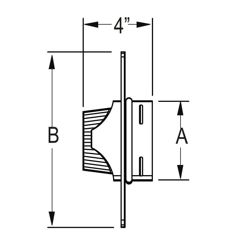 - Dimensions: 3 3/8 dia. connection x 8 1/2 dia. trim x 4 deep.