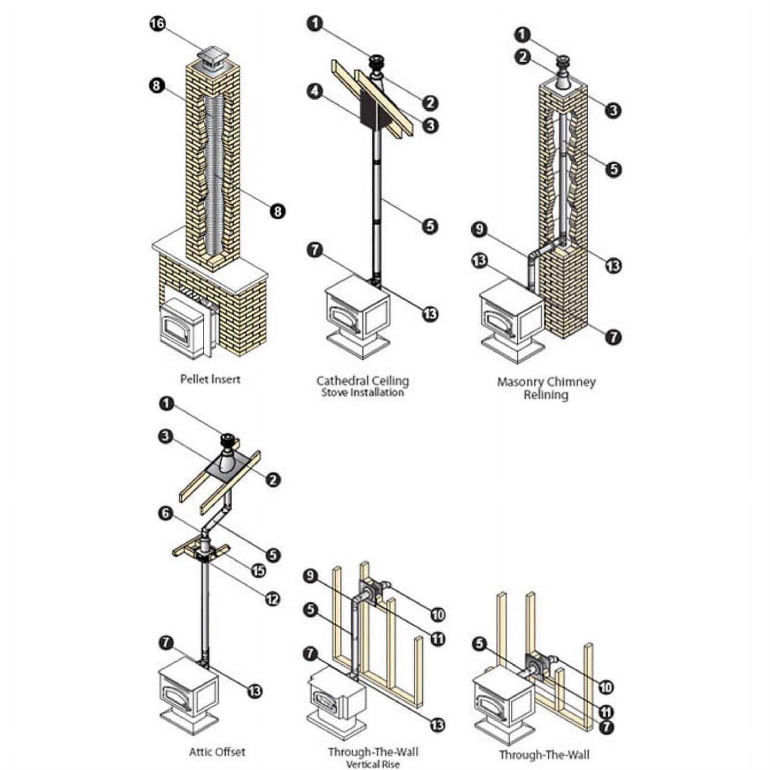 Pellet Vent is a complete venting system from Dura Vent for stoves and inserts that use oil fuel or multi-fuels (including wood pellets, corn, cherry pits, switch grass, coffee husks, walnut shells, soybeans, wheat, sunflower hulls, rapeseed and sugar beets). The Flexible Chimney Stove Pipe is designed for use in a masonry chimney and features twist-lock connections to easily connect with rigid Pellet Vent piping. For added durability, Pellet Vent seams are factory-sealed on all elbows, tees and fittings.
