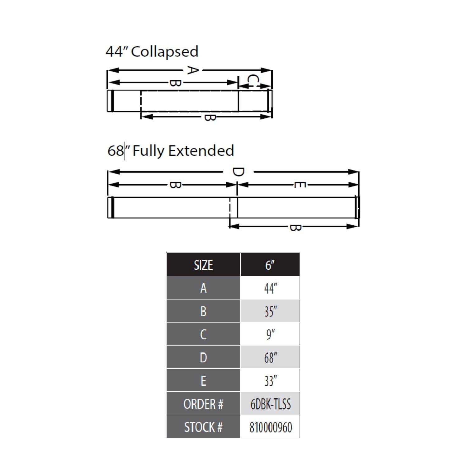 DuraVent 6″ DuraBlack Stainless Steel 44″ – 68″ Telescoping Length – 6DBK-TLSS