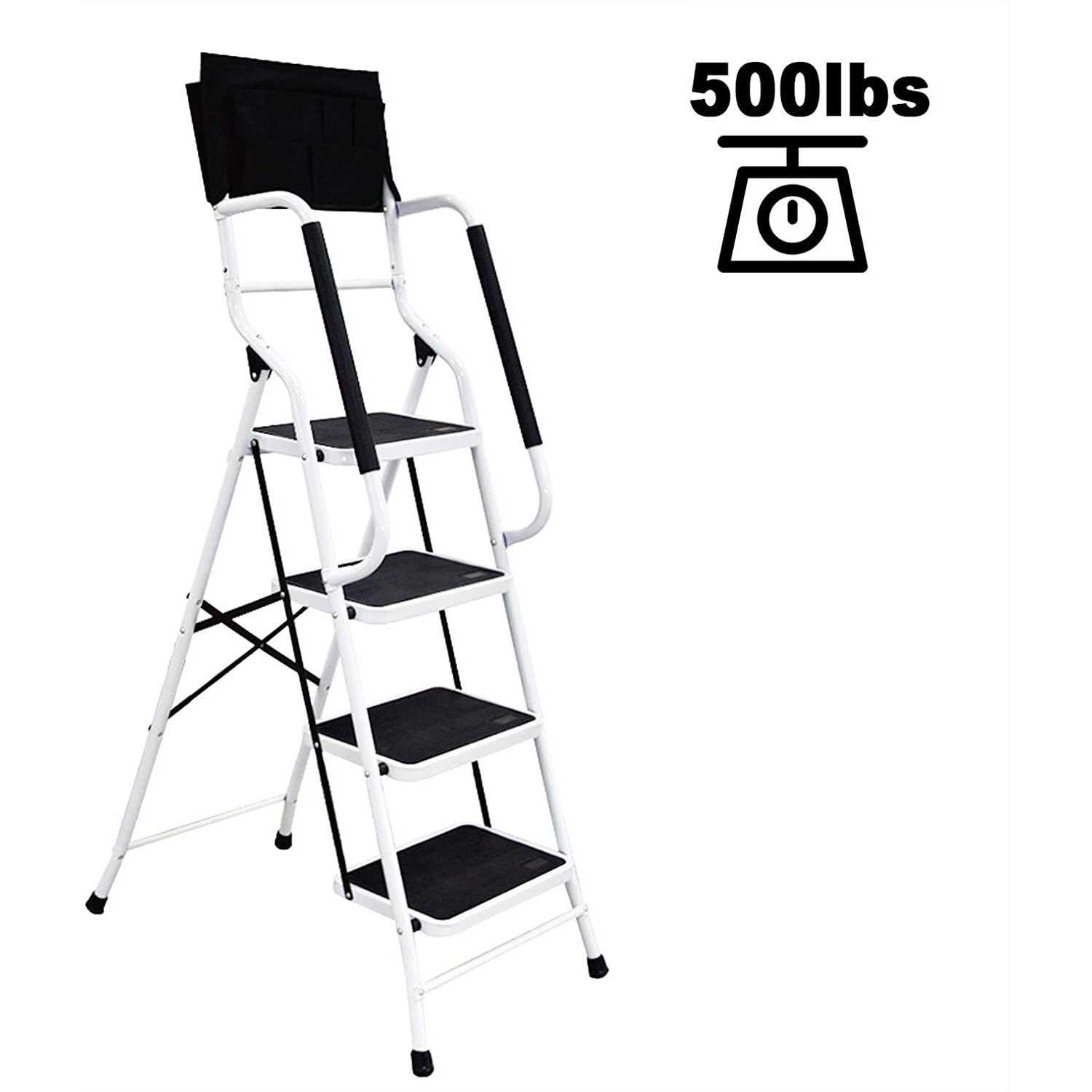 EdMaxwell 4 Step Ladder with Handrails 500 lb Capacity Step Stool Folding Portable Ladders