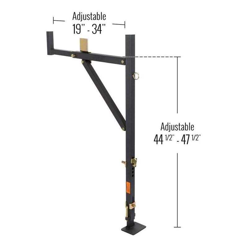 Arm adjusts from 49.5″- 52″long and 19″- 34″wide Easy no-drill installation 250-lb weight capacity Rack legs securely slide into the mounting base and adjust from 50″to 54″in height Polyester with hook-and-loop closures help attach and stabilize your cargo Efficiently haul extra-long cargo without taking up bed space with the Apex No Drill Steel Ladder Rack. This steel ladder rack uses a unique clamping system, providing a stable base without having to drill into your truck bed. The legs securely slide into the mounting base, and are adjustable from 50″to 54″high. Featuring polyester hook-and-loop closures, you can easily attach and secure your cargo. This ladder rack has telescoping arms which adjust from 19″to 34″wide and 49.5″to 52″long, to fit nearly any pickup truck model. Able to hold up to 250-lbs of extra gear, this rack is made from durable, black powder-coated steel that is resistant to scratches and corrosion.