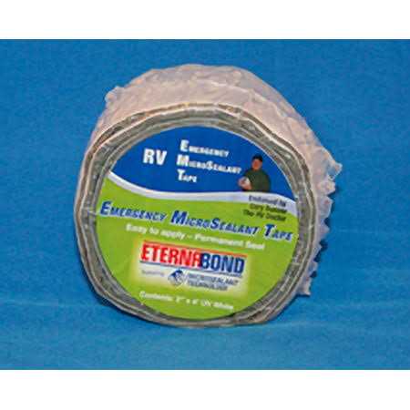 Keeping a Mini Roll Of Eternabond’s RV EMT around is extremely handy when you find yourself in a situation that calls for an emergency leak repair. Its the perfect answer to those quick fixes like window leaks, holding tank cracks, slide room repairs, and awning rips. The RV EMT can even be used on tough repairs like pool liners, rubber boots, and expensive covers for boats. The mini 2″ x 4′ roll is the perfect size for conveniently storing in your tool box or kitchen drawer in the RV.