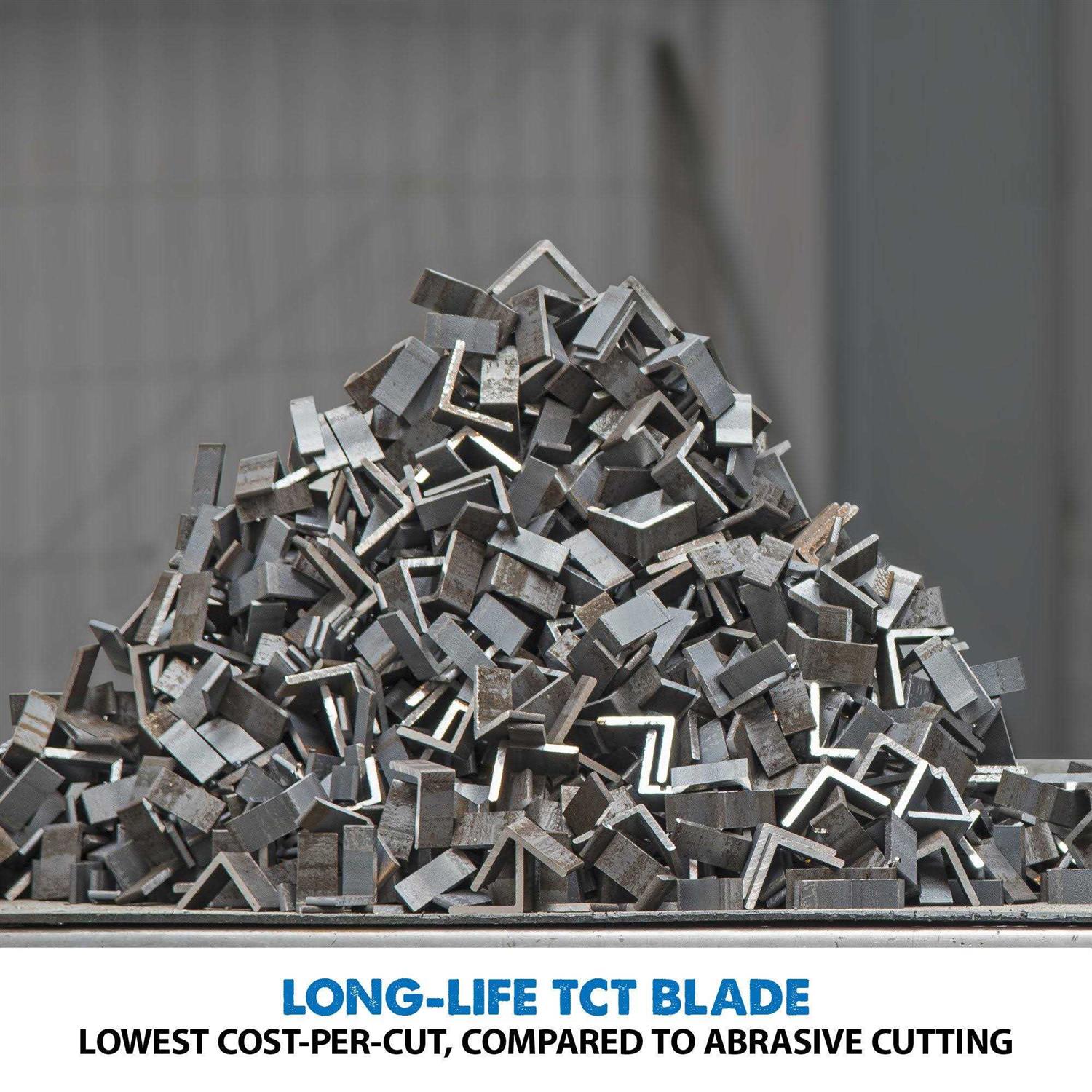 The Evolution is unlike conventional abrasive chop saws. It utilizes a circular saw style blade with tungsten carbide tips that far outperform abrasive cut off machines in cut quality, blade life, and safety. Evolution saws are much cleaner, faster, and safer than torches, portabands and other methods for cutting plate, sheet metal, tube, pipe and angle iron. A 15 amp motor provides plenty of power for most all cutting applications. New features include a carry handle for portability, a cast aluminum base, and an improved vise design with miter detents and a locking pin for quick and repeatable miter cuts! This saw can handle up to a 15 inch diameter blade for even more capacity. Heavy-duty cast aluminum base with integrated wear plate & bench mounting holes. Quick-release vice with robust square-threaded rod for fast & secure clamping Accurate & durable cast steel vice with 0 – 45 miter capacity & locking pin. Compact design with a head lock down pin & carry handle for easy transportation.