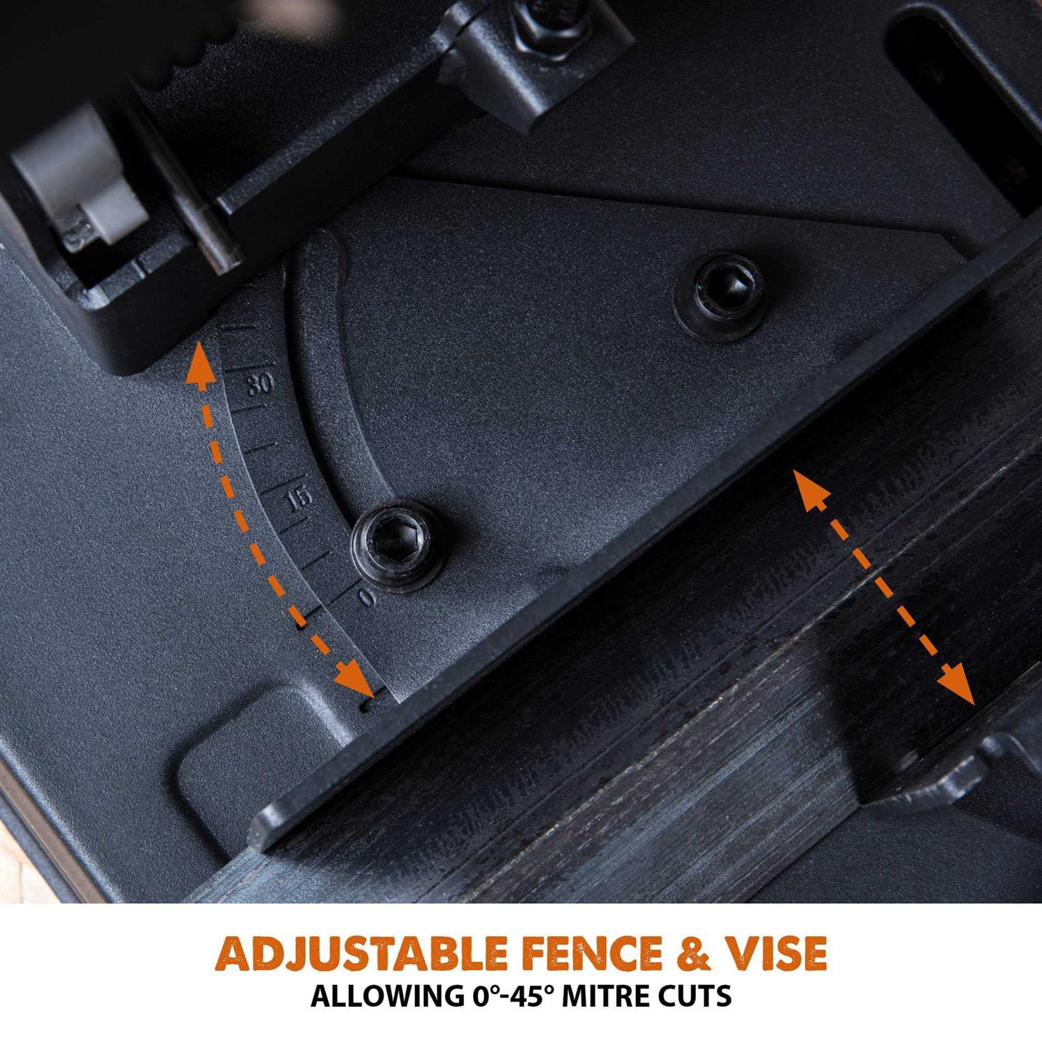 - Ergonomic carry handle for easy job site transporting and Japanese Tungsten Carbide Tipped (TCT) blade included