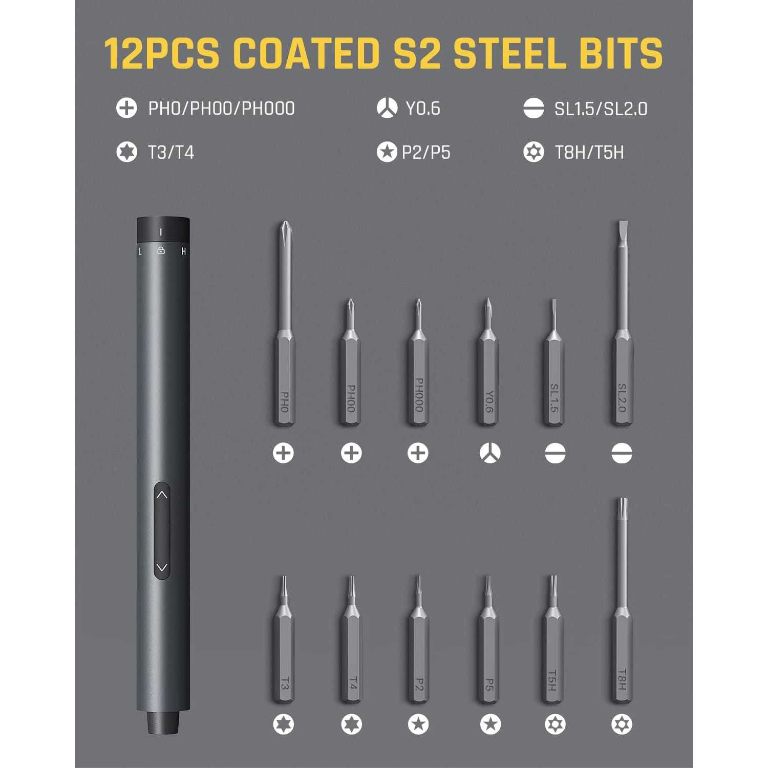 Fanttik Mini Electric Screwdriver Set with 12-in-1 Metal Bits