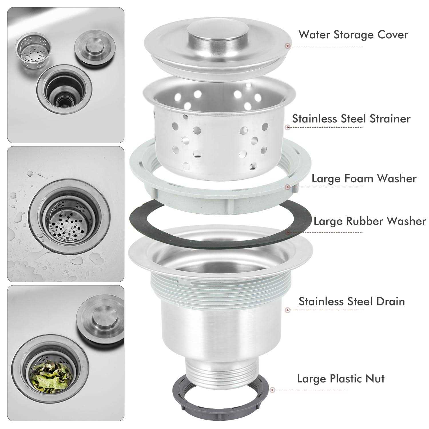 - Humanized Design:Rounded edges basin with detachable filters can prevent food and debris from clogging the drainage pipe.