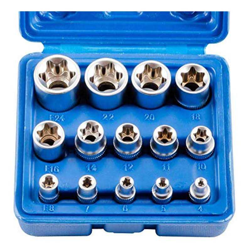 Female E Torx Socket Set 3/8 1/2 1/4 Drive E4 – E24 External Torque Star Socket Kit 14pcs
