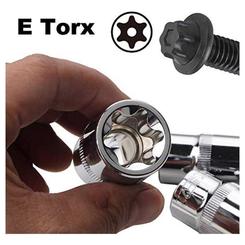 • Includes: 1/4″ Dr.: E4, E5, E6, E7, E8. 3/8″ Dr.: E10, E11, E12, E14, E16. 1/2″ Dr.: E18, E20, E22, E24.