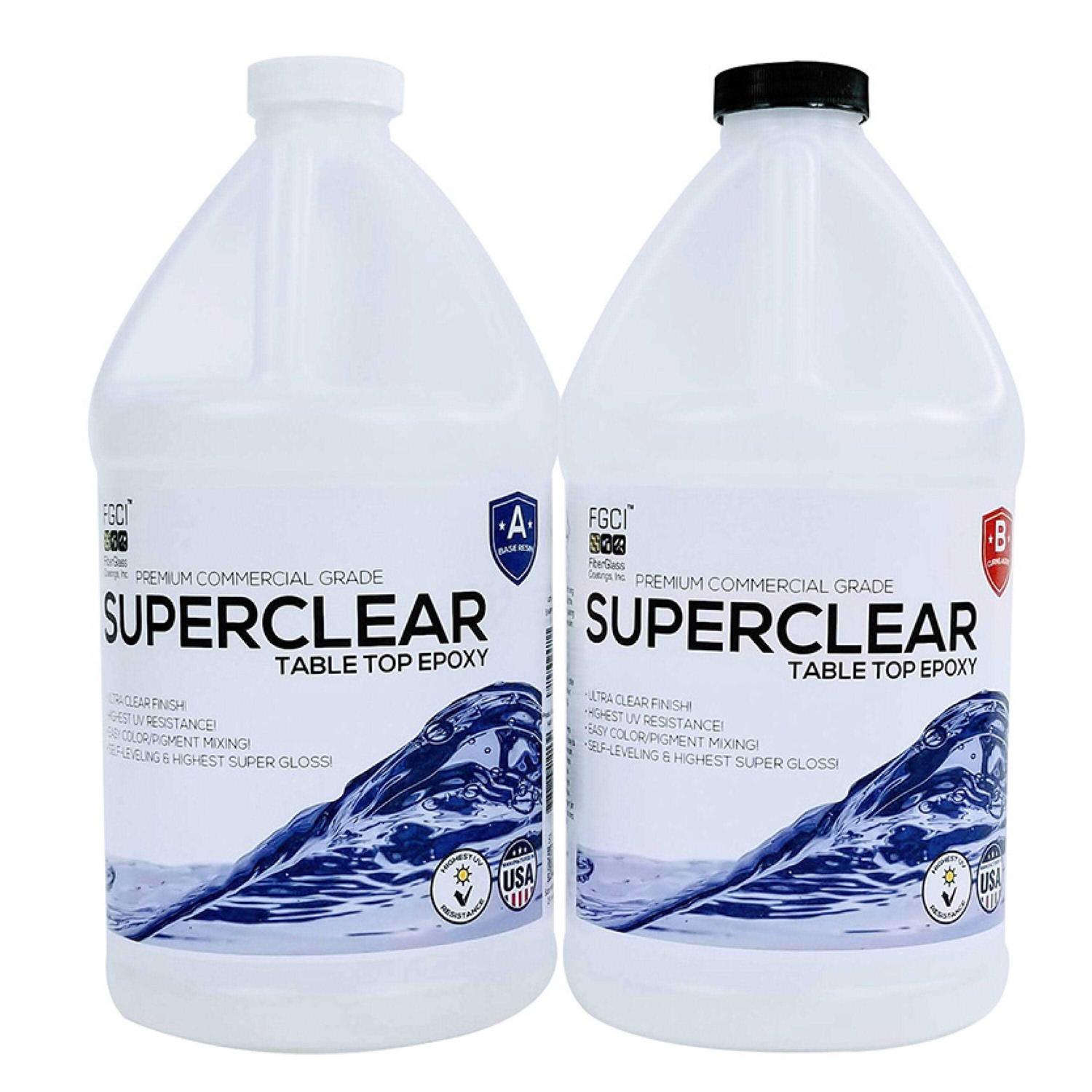 Introducing the ALL NEW SuperClear Epoxy Table Top. This kit is sold around the world and is the clearest Table Top epoxy you will find. Our formula has high UV resistance, low VOC’s; is solvent free and is great for Bar tops, Table Tops, and many arts and crafts projects! Perfect for the Do-it-yourselfer or the professional!