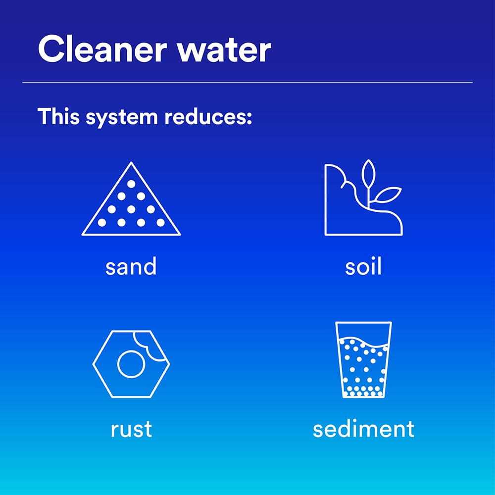 - This system offers filtration that reduces sand, sediment, rust, and silt INCLUDES THREE MONTH FILTER