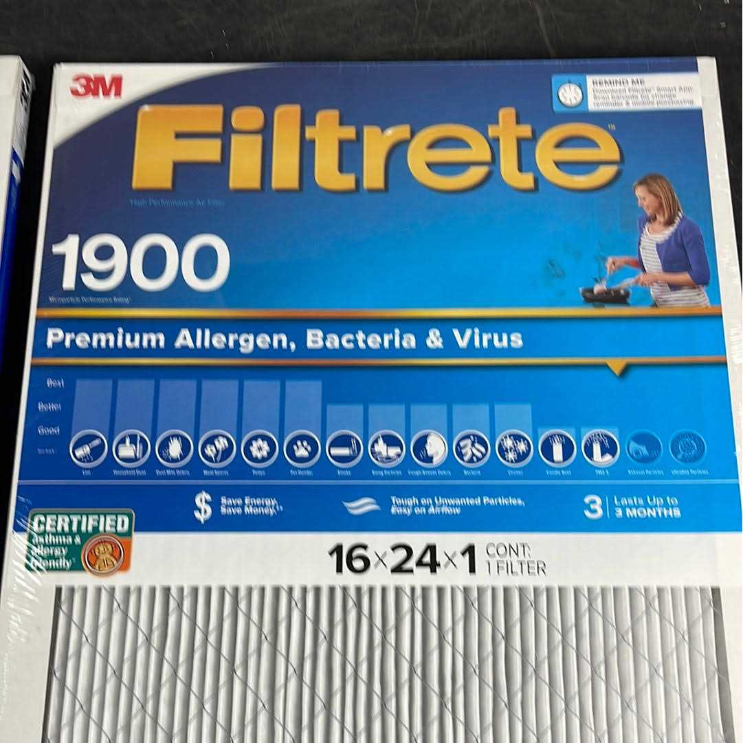 Every breath is important! Filtrete Ultimate Allergen 16×24 Air Filter proactively protects you against dust, bacteria, viruses and allergens from the air passing through your filter. It is designed with exclusive Filtrete Brand technology from 3M to pull in and trap unwanted air particles while letting cleaner air flow through. For maximum performance, change your filter at least every 90 days. FeaturesEvery breath is important! Filtrete Ultimate Allergen 16×24 Air Filter proactively protects you against dust, bacteria, viruses and allergens from the air passing through your filter. It is designed with exclusive Filtrete Brand technology from 3M to pull in and trap unwanted air particles while letting cleaner air flow through. For maximum performance, change your filter at least every 90 days.