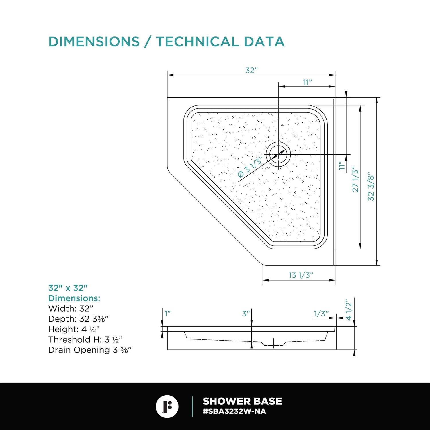 Bathrooms come in all shapes and sizes, and so should your shower bases. These fiberglass acrylic shower pans are perfect in any setting and come in three convenient sizes. Our neo-angle corner shower base is perfect for compact spaces, it is made to be installed in a corner. The clean, modern lines of this bathroom shower base look stylish and neat so you dont have to compromise on appearance. Crafted of a fine gloss white acrylic with a fiberglass core, the base is resistant to scratching and fading, and is easy to clean and maintain. Our shower bases are constructed with a durable non-slip texture that ensures comfort and safety while showering. The built in structural support on each shower base provides a solid foundation. They also come with an integrated tile flange as well as a low curb. They are waterproof and leak-proof and the opening is made to fit a standard fitted drain. Whether it’s a new construction or a remodel, our shower pans are an excellent choice for most bathrooms.
