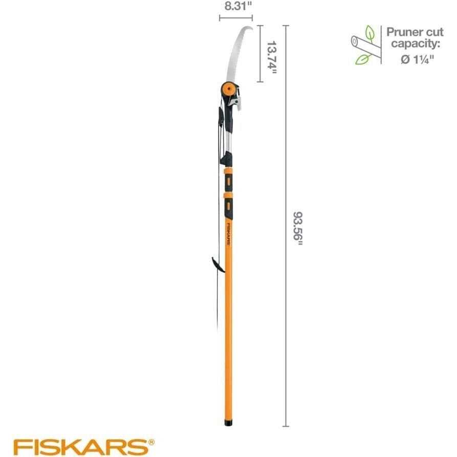 Fiskars 394732 1.25 in. Cut Capacity Steel Titanium Coated Cutting Blade 15 in. Fiberglass/Alum Pole 16 ft. Tree Pruner