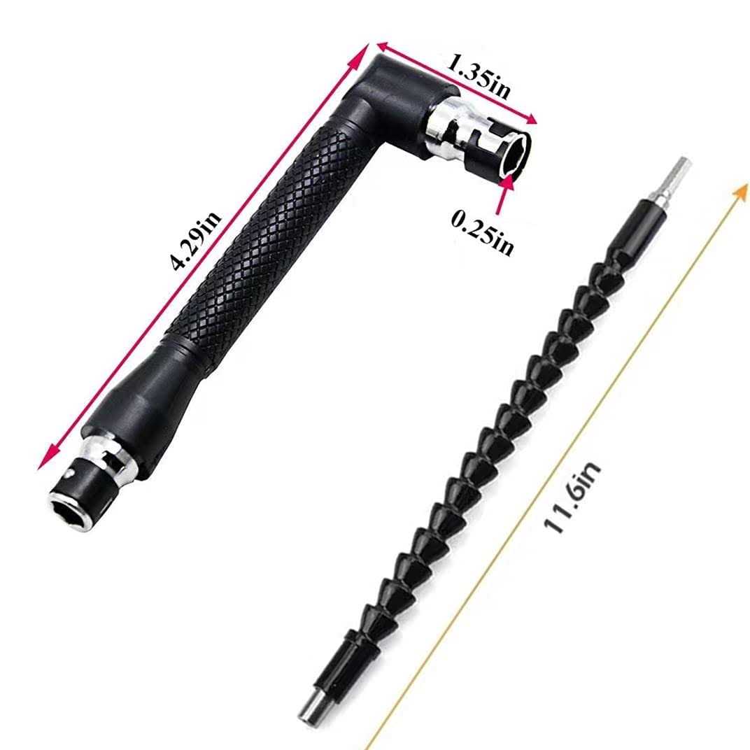 Flexible Drill Bit Extension, Bendable Soft Shaft Extension Bits 11.6inch, Flexible Extension Connection with Manual 90° Right Angle Screwdriver