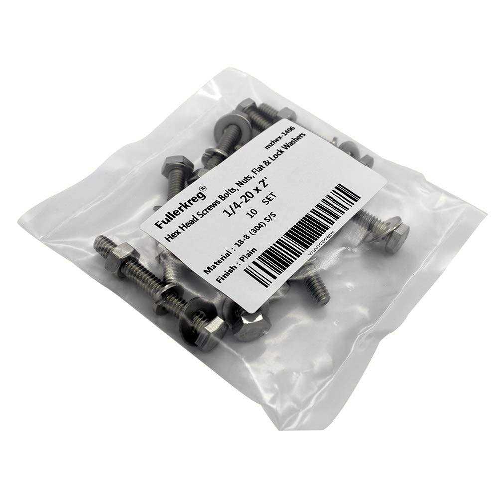 (10 Sets) 1/4-20×2″ Stainless Steel Hex Head Screws Bolts, Nuts, Flat & Lock Washers, 18-8 (304) S/S, Fully Threaded by Bolt Fullerkreg