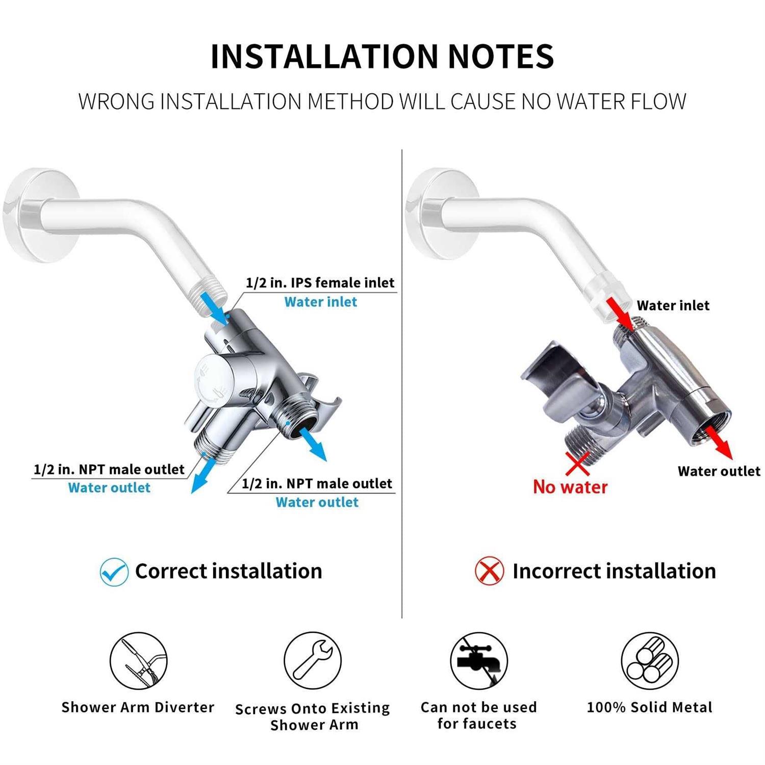 G-Promise Solid Metal Shower Arm Diverter with Handshower Mount for Hand Held Showerhead and Fixed Spray Head ∣ G 1/2 3-Way Bathroom Universal
