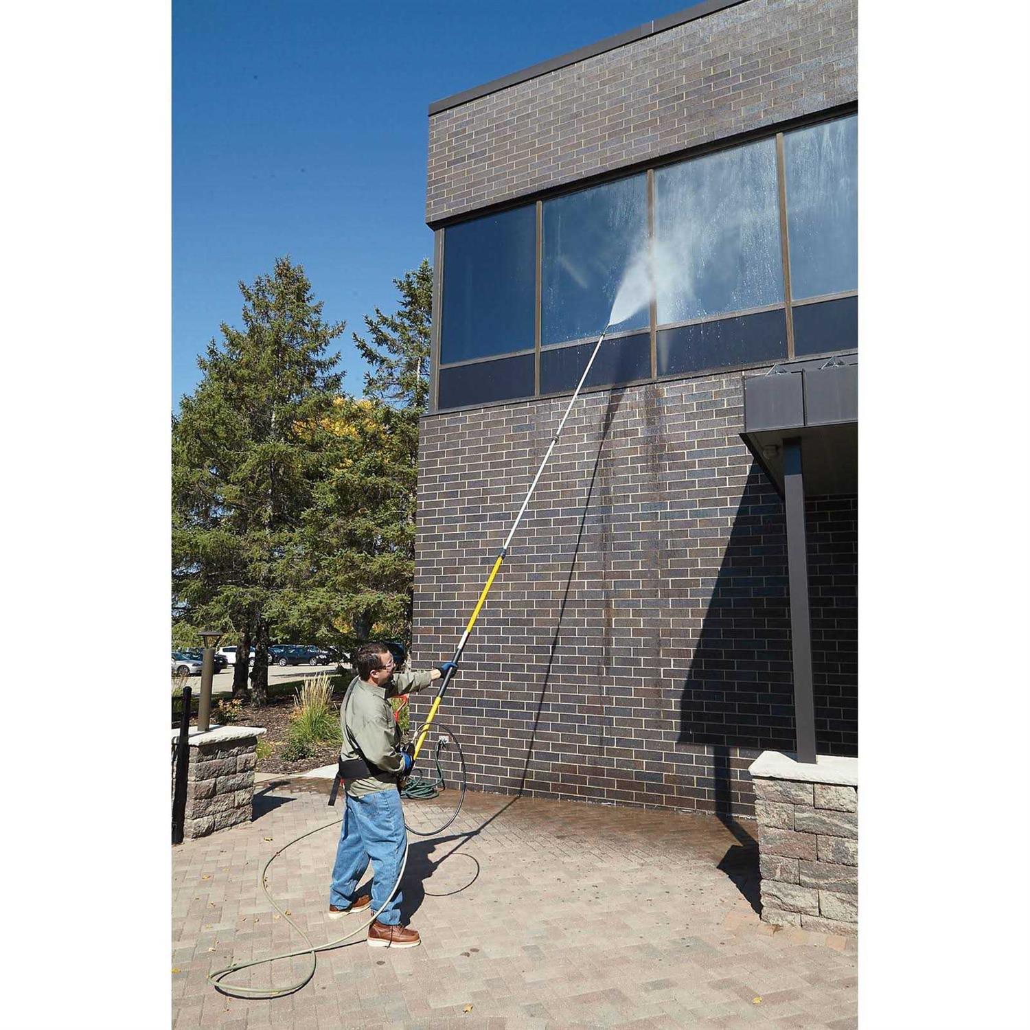For use in cleaning hard to reach places, siding, house eaves, farm equipment, semi-tractor trailers.