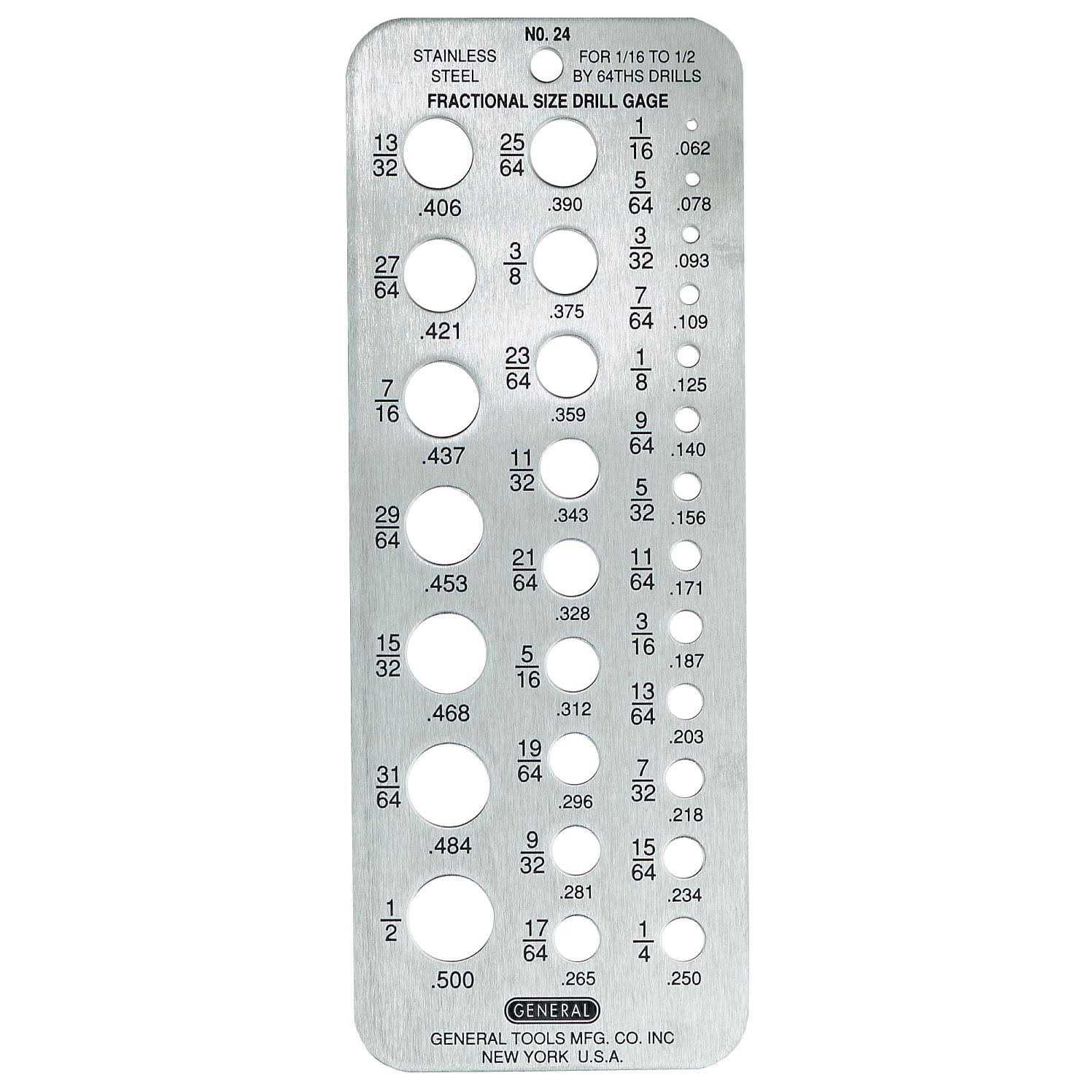 General 24 Drill Gauge, Stainless Steel