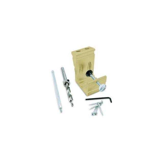 Jig allows you to create three popular types of pocket hole joints with accuracy and relative ease. Made of heavy-duty aluminum, it can be mounted to a bench for stationary use and includes a clamping system for portable use. Used in applications such as building cabinets, furniture or other high precision woodworking endeavor. Includes one pocket hole jig with clamps, 3/8 in step drill bit, three step drill stops such as 1/4, 5/16, 3/8 in, hex wrench, 6 in steel square drive bit and square drive screws. Heavy-duty aluminum extrusion and hardened steel drill bushings. Heavy-duty aluminum extrusion and hardened steel drill bushings. Portable, but can be bench mounted. Bit is replaceable (#32).