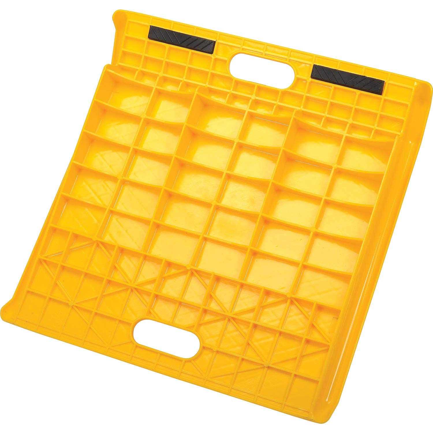 Lightweight curb ramp provides an easy way to move hand trucks with heavy loads over curbs and steps without jostling the cargo or causing strain to the operator. Highly visible safety yellow ramp weighs only 9.5 lbs. for easy portability. Strong high-density polyethylene ramp has 1″H side rails and a non-slip surface to provide excellent traction in all weather conditions. Hand truck ramp measures 27″L x 27″W (24″ usable W) x 4″H with an 8″H service range. Meets OSHA requirements for use as Curb Ramp. Curb Ramps allow for easy movement over uneven walking surfaces, eliminating the need to lift and pull fully loaded hand trucks.