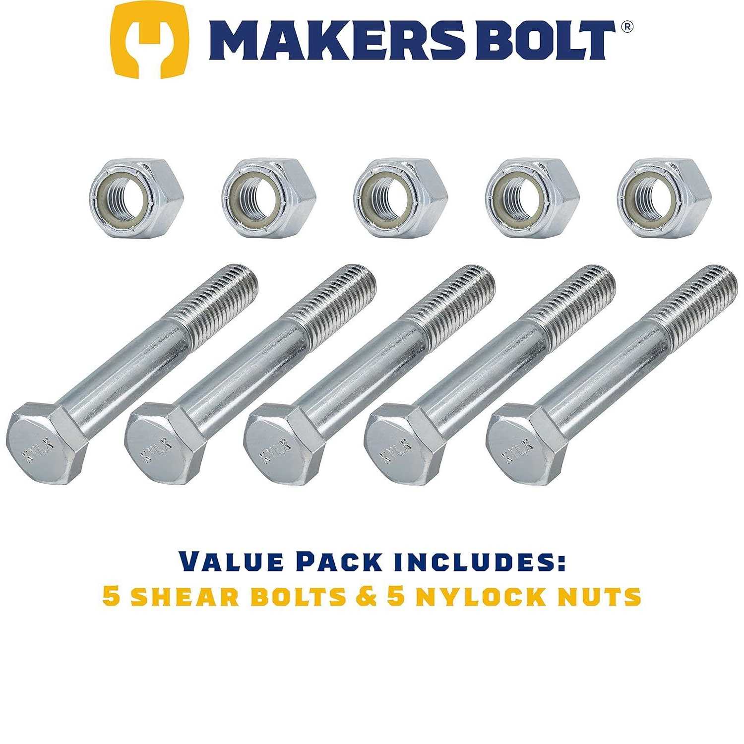 Grade 2 Shear Bolts for Rotary Cutters 1/2″ x 3-1/2″ with Nylock Nuts – 5 Pack