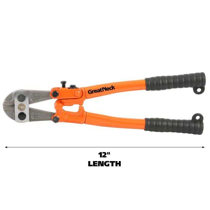 This Great Neck Saw Bolt Cutter is durably built with forged steel. It is a total of 12 inch in length and gives you ample leverage to get the job done. This cutting tool is ideal for powering through concrete rods, medium tensile, soft bolts, rivets, bars, chains, cables and other objects. It also includes hold-firm vinyl grips for added comfortability while doing your tasks.