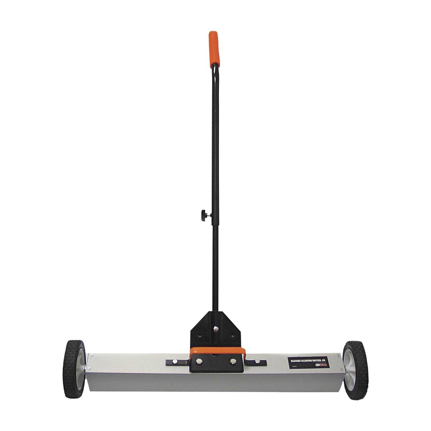 The Grip telescoping rolling magnetic sweeper picks up nails staples tacks screws and other ferrous material. Height in. 30 Product Style Retrieving magnet Pulling Power lbs. 50 Dimensions L x W in. 30 x 3 Handle Length in. 35 1/2-50 Wheel Type Rubber. Age Group: adult.