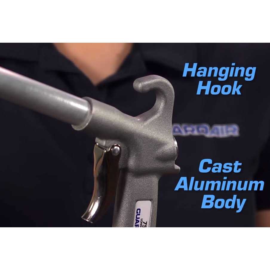 Clean Hard-to-Reach Areas with the Long John 12 inch Extended Air GunThe perfect tool for cleaning inaccessible areas the Guardair Long John 12 inch Extended Air Gun makes quick work of blowing floor debris cleaning masonry forms tanks ovens molds rafters machinery and storage areas. Constructed of durable aluminum the air gun is built to last. A comfortable pistol-grip body style matched with an ergonomically designed grip reduces user fatigue while adding super-comfortable handling.Outfitted with a Venturi nozzle the Long John 12 inch extended air gun delivers 100 more than conventional air guns. With a 12-inch nozzle the air gun is extremely maneuverable and easy to use. A convenient built-in hanger provides easy storage when not in use. Features standard 1/4-inch inlet size and 1/8-inch F NPT outlet size for no-hassle connections and fast operations wherever duty calls.