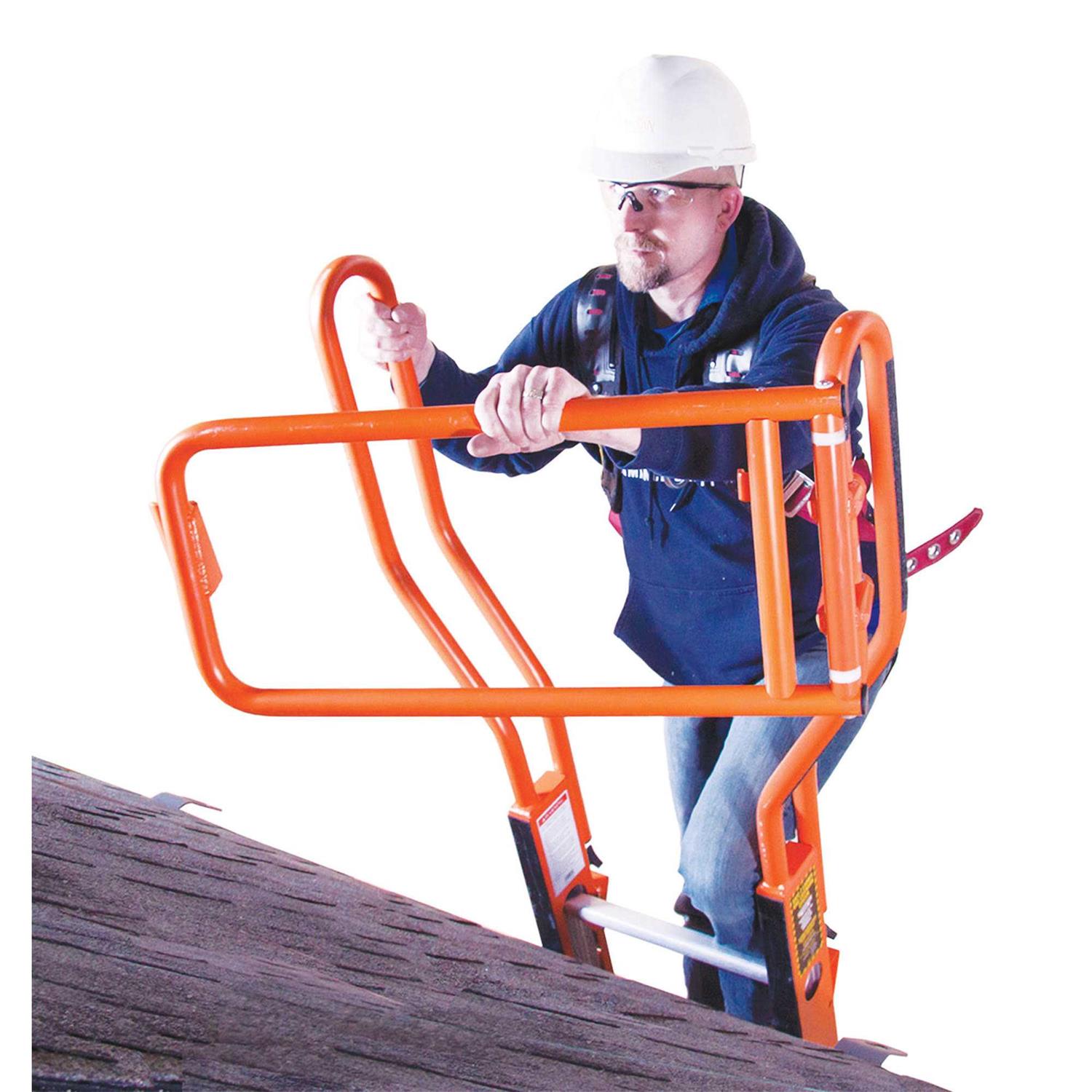 The Guardian Fall Protection Ladder Stability Anchor is specially designed to promote compliance with OSHA regulation 1926.1053(b)(1), which states, the ladder shall be secured at its top to a rigid support that will not deflect. The Ladder Stability Anchor functions to clamp to a roof (without any penetration of the substrate) and then secure to the top rung of a ladder with two 48″ Velcro straps, ensuring that the ladder will not fall or move. It is composed of lightweight aluminum for superior durability, and requires no special tools to install.