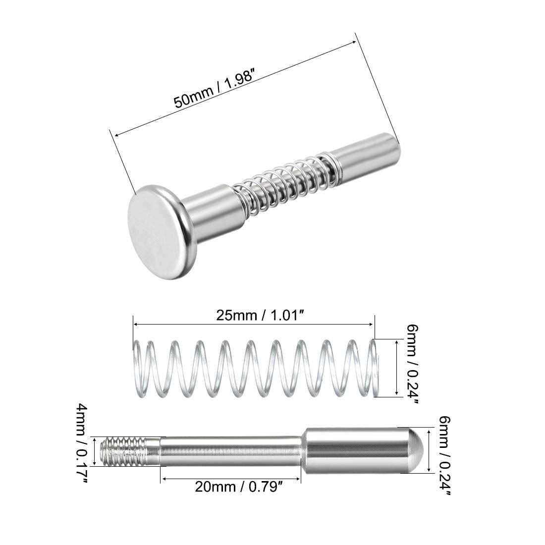 Uxcell Plunger Latches Spring Loaded Stainless Steel 6mm Dia Head 6mm Dia Spring 50mm Total Length , 4pcs | Harfington, 50mm / 4pcs