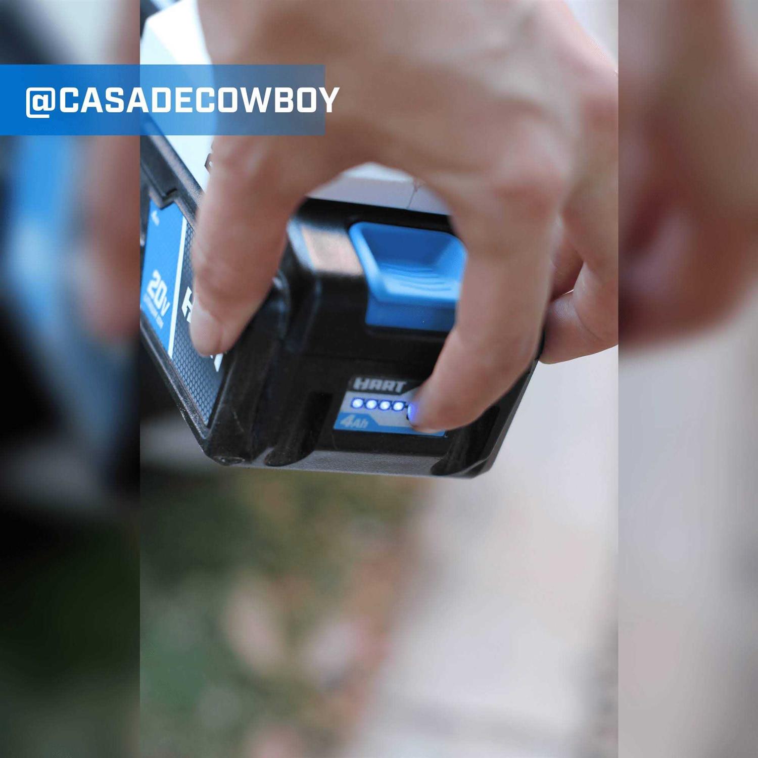 The HART 20V 4.0Ah Lithium-Ion Battery (HPB13) is an excellent addition or start to any DIYers HART tool collection. This battery is compatible with all HART 20V power tools. It features Lithium-Ion technology to give you long-lasting and fade-free power to get you through any project you decide to take on. This battery is designed to be compact and lightweight for more maneuverability while reducing user fatigue. Whether you are maintaining your yard with HART outdoor tools, cleaning and maintaining your car with HART automotive tools, or keeping cool and entertaining with HART lifestyle tools, the HART 20V 4.0Ah Lithium-Ion Battery is there to provide the power you need when you need it with 4x longer runtime than the HART 20V 1.5Ah Lithium-Ion Battery (when tested on the HART Hammer Drill). This battery is sold as a single battery and does not include a charger or a tool. Find new ways to use your HART 20V 4.0Ah Battery!