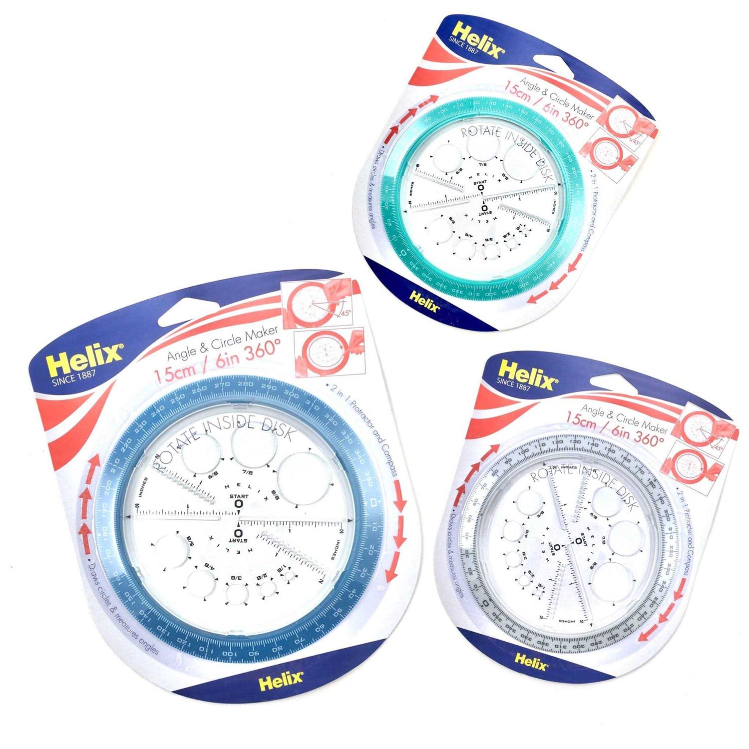The 360 Angle & Circle Maker combines 3 Geometry tools into 1 innovative & exciting product! The 6″ diameter outer ring acts as a classic protractor, while the separate inner circle easily rotates to draw circles just like a compass. And the 8 integrated circle templates built into the inner ring for drawing accurate small circles far easier than using a standard compass. Unique product is much easier for young children to manipulate and use than a standard compass, and the integrated design means that they can more easily understand how angles and measurements correspond with each other. The perfect tool for young students working on mastering geometry and angles! Sold in assorted colors Blue, Teal or Grey (no color choice). Key Features : Innovative tool combines a protractor, compass and circle templates all in one! 6″ diameter outer ring works as a classic 360o protractorInner spinning ring rotates around a point to draw circles and angles, just like a compassIntegrated circle templates into the center ring make drawing small circles a snapPerfect for geometry class and helping to better understand measuring & angles! Customer will receive 1 Angle & Circle Maker. Color (Blue, Teal & Gray) is random and cannot be chosen at this time.