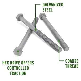 Hex bolts feature hexagonal heads and machine threads for use with a nut or in a tapped hole. They can be used to fasten wood to wood, wood to metal or metal to metal applications. Be sure to use washers and nuts that are the same grade and finish as the hex bolt. Pre-drilled holes are required.