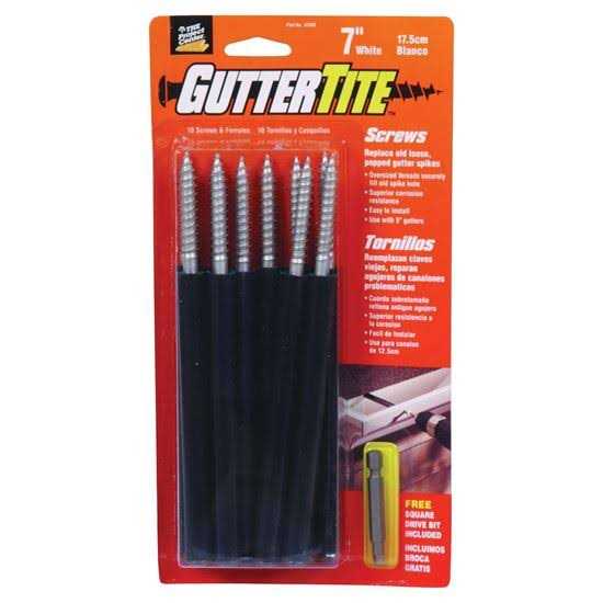 Replaces old, loose or popped gutter spikes. No pre-drilling, 500 hrs dacrotized coat and low profile head. Note, each blister card includes ten screws, ten 5 in plastic ferrules and one #3 square drive bit.