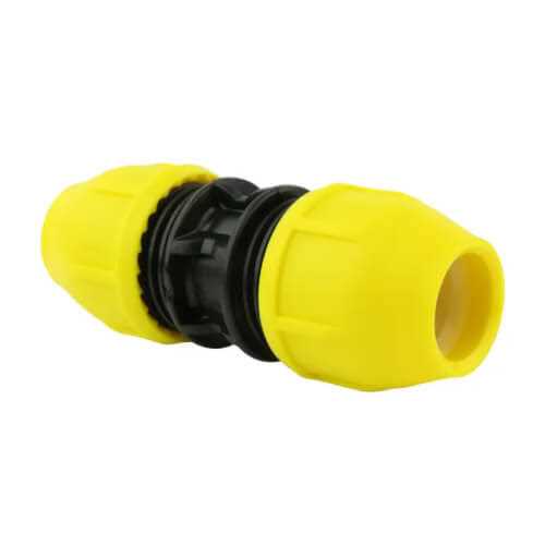 Pipe Coupler allows you to safely and easily connect 2 pieces of polyethylene gas piping. Simply slide the lock collar onto the pipe and screw it into the other side of the connection. Repeat the same for the other side.