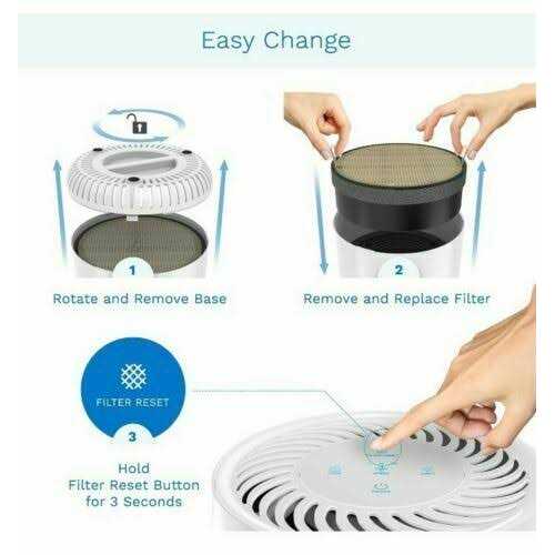 - 3-stage filtration includes a pre-filter, HEPA H13 and activated carbon filter that effectively removes airborne particles from indoor air.