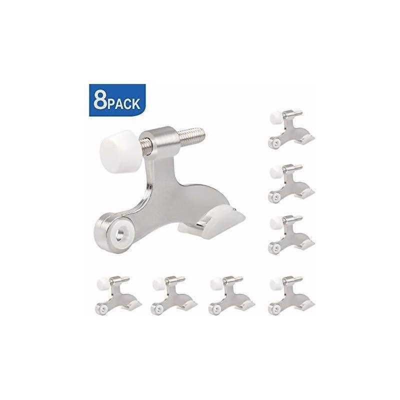 HOMOTEK 8 Pack Hinge Pin Satin Nickel Door Stopper,Adjustable Deluxe Heavy Duty Door Stopper 2-1/2″x1-3/4″,with White Rubber Bumper Tips