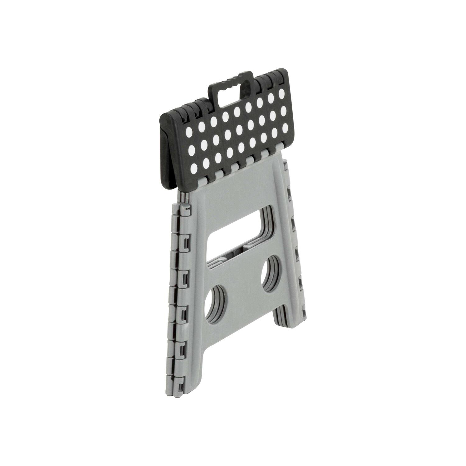 Reach high spots around your home with ease with this One-Step Plastic Folding Step Stool. It features a durable plastic design with a carrying handle and skid-resistant feet and top, so you always feel supported. It has a 200 lb. weight capacity and is perfect for a bedroom or bathroom.