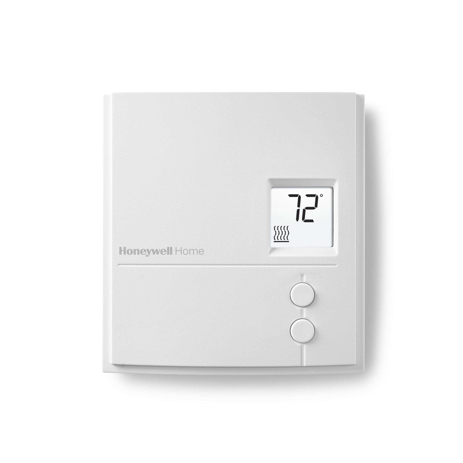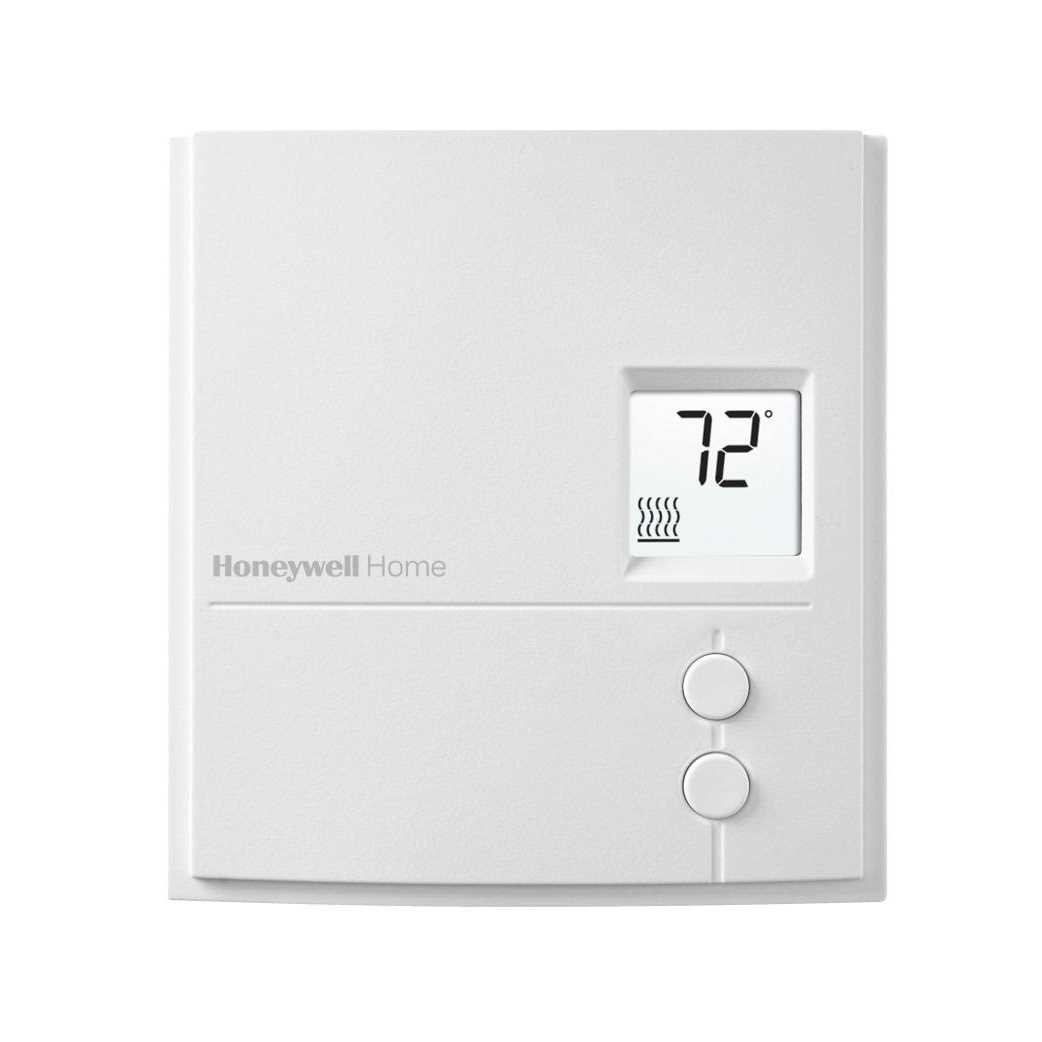 The Honeywell RLV3150A1004 digital non-programmable thermostat is the ideal addition to your electric baseboard heating system. A compact design and an incredibly easy installation process make this a versatile unit that can go well with any room. This thermostat also features a highly responsive backlit screen that will reveal your selected temperature in large and wide numbers. The RLV3150A1004 works especially well with electric baseboard heating, convectors and two-wire radiant ceilings. This unit features a high capacity of 3000 W at 240 V. The overall simplicity of this model combined with its ability to save you money when utilized properly make it an excellent addition to any home. Easy to install and use features a convenient backlit screen. Easy to install and use features a convenient backlit screen. Triac silent switching for accurate temperature control Fahrenheit or Celsius.