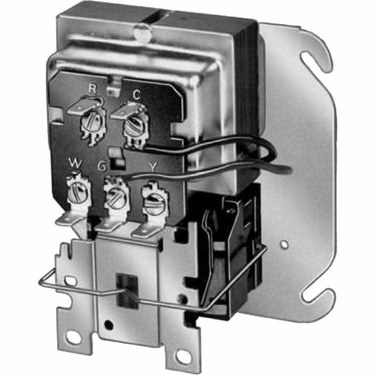 Honeywell R8285D5001 Fan Center This relay includes standard low voltage transformer and relay to control fan motors and auxiliary circuits in heating and cooling circuits. The relay provides overload protection for the transformer; it has convenient connections for the thermostat and other cooling/heating controls. The relay can be mounted on any standard 4 x 4 junction box. The relay can be replaced without disturbing any wiring.