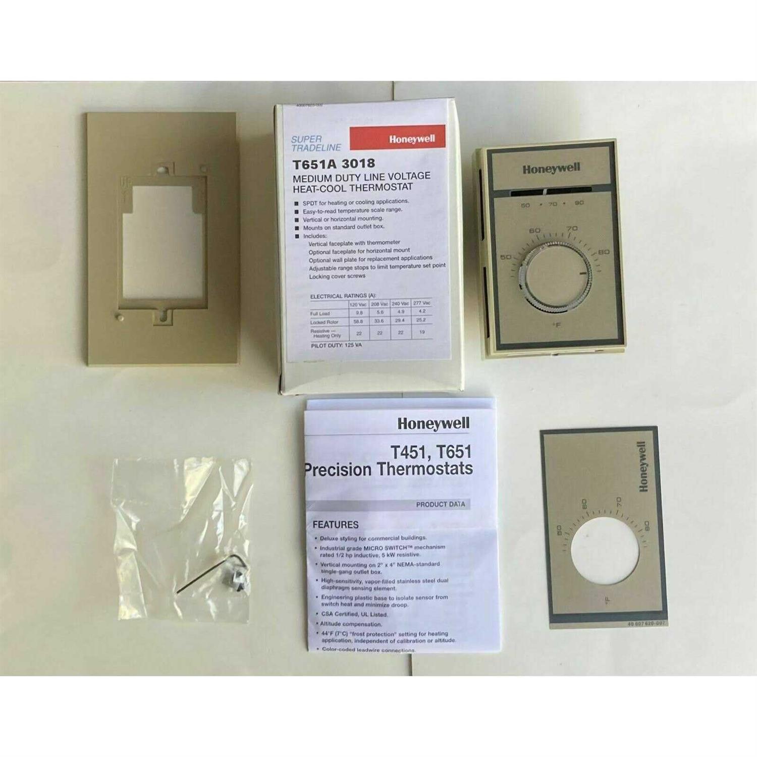 Honeywell Programmable thermostat in Champagne gold color comes with beige cover and features automatic cooling as well as heating anticipation. It has SPDT contact configuration. It features plastic base for durability. It consists of vertical scaleplate with thermometer, horizontal scaleplate without thermometer, range stops and locking screws, wall plate and high accuracy dual diaphragm sensor. It measures 2-15/16 Inch x 1-1/2 Inch x 4-1/2 Inch. Thermostat allows the switch to break heating and makes cooling on every temperature rise. It can be easily mounted on standard vertical or horizontal outlet box for safer use. It operates at a frequency of 50/60 Hz. It has a voltage rating of 120 – 227 VAC and can be set the temperature between 44 to 86 deg F. It is suitable for controlling line voltage valves, motors, contactors, electric heat, elements, duct furnaces and fan coil units in heating/cooling systems. Thermostat is CSA certified.