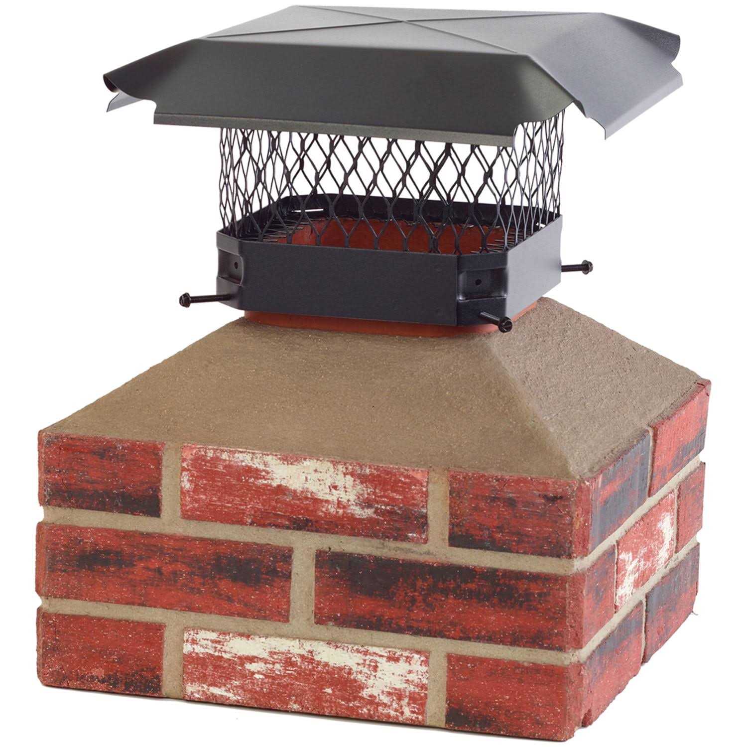The Black Galvanized Steel Draft King chimney cover is the durable and economic choice for chimneys in most regions. Like all Draft King chimney covers, the outside mounting design provides maximum free air space and better draft while the attractive powder coat finish helps it stand up to the elements. Made with a 24-Gauge galvanized steel hood with scalloped corners and roll-formed edges, 18-Gauge 3/4 in. expanded galvanized steel mesh, 14-Gauge galvanized steel base and slotted hex-head bolts.