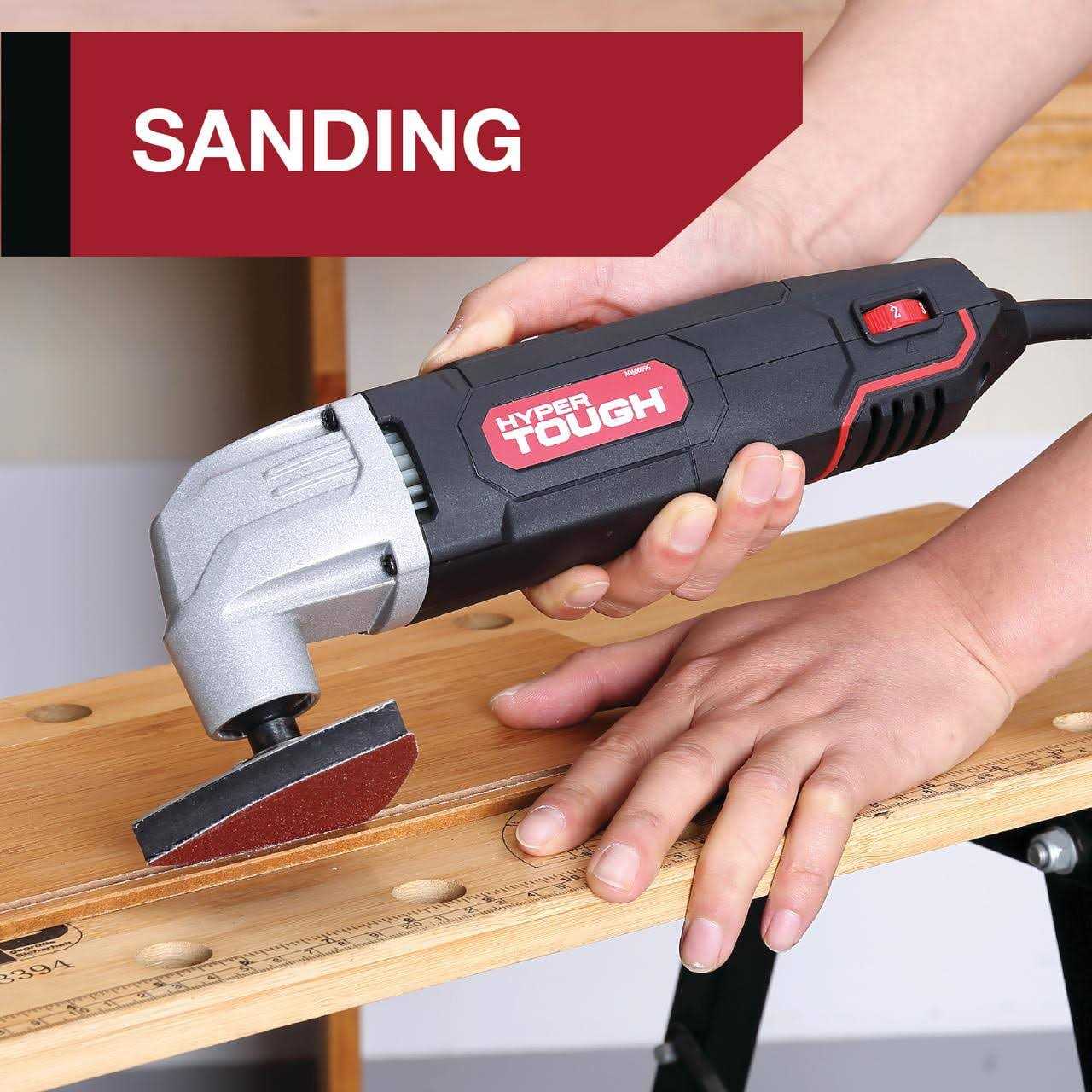 Perform a wide variety of repair and creative tasks with ease with this Hyper Tough Oscillating Multi Tool. This device has the versatility to assist you in most projects, such as crafts, remodeling or household fixes. This tool has a compact design that allows it to fit where other typical tools cannot. This brand offers a line of accessories that can be used in plenty of tasks, such as removing baseboards, door casing and rails without damaging walls. You can also utilize it for cutting precise drywall openings, grinding mortar, scraping adhesives and removing flooring. The 2.1 AMP oscillating multi tool features a double die-cast aluminum gear housing and a sealed bearing to ensure long life. Its soft-grip handle makes for comfortable use. The Hyper Tough oscillating multi tool kit comes with three pieces of sandpaper of different grits.