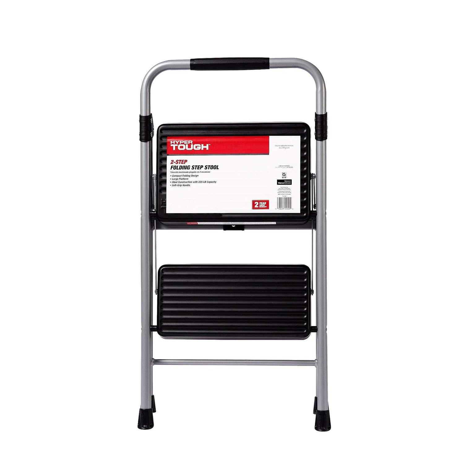 Hyper Tough 2-Step Household Folding Steel Step Stool, ANSI Type 2, 225 lb Weight Capacity, Lightweight