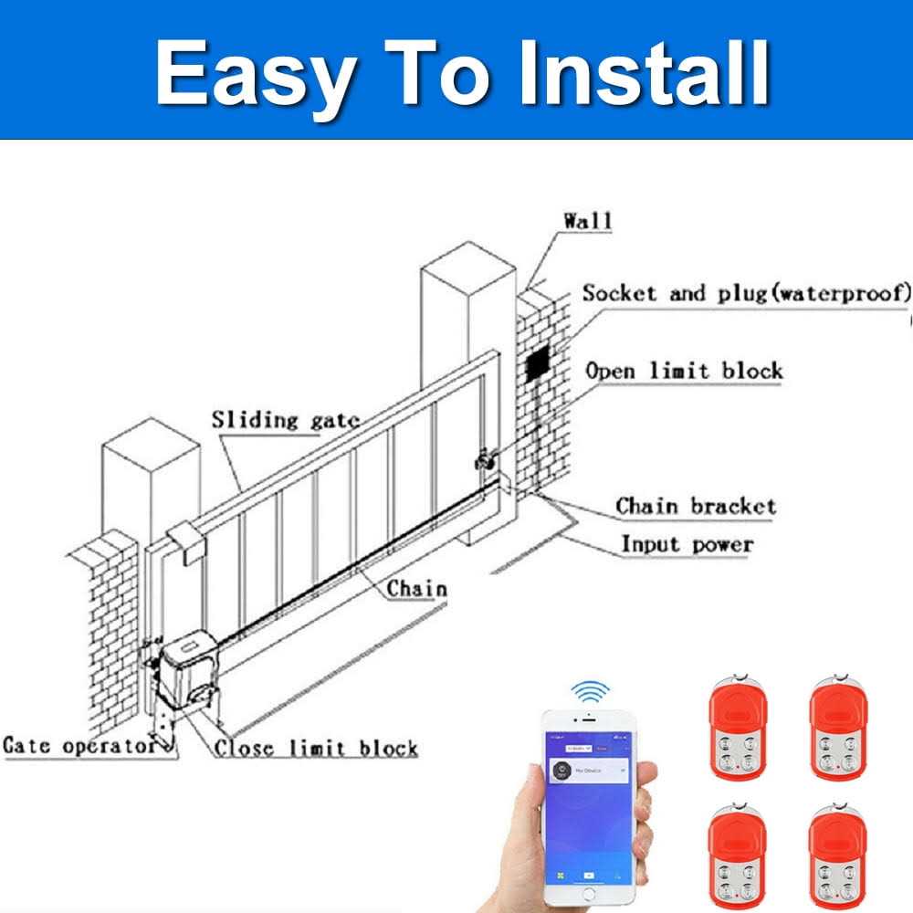 Imeshbean Automatic Sliding Gate Opener APP Control with 4 Remotes