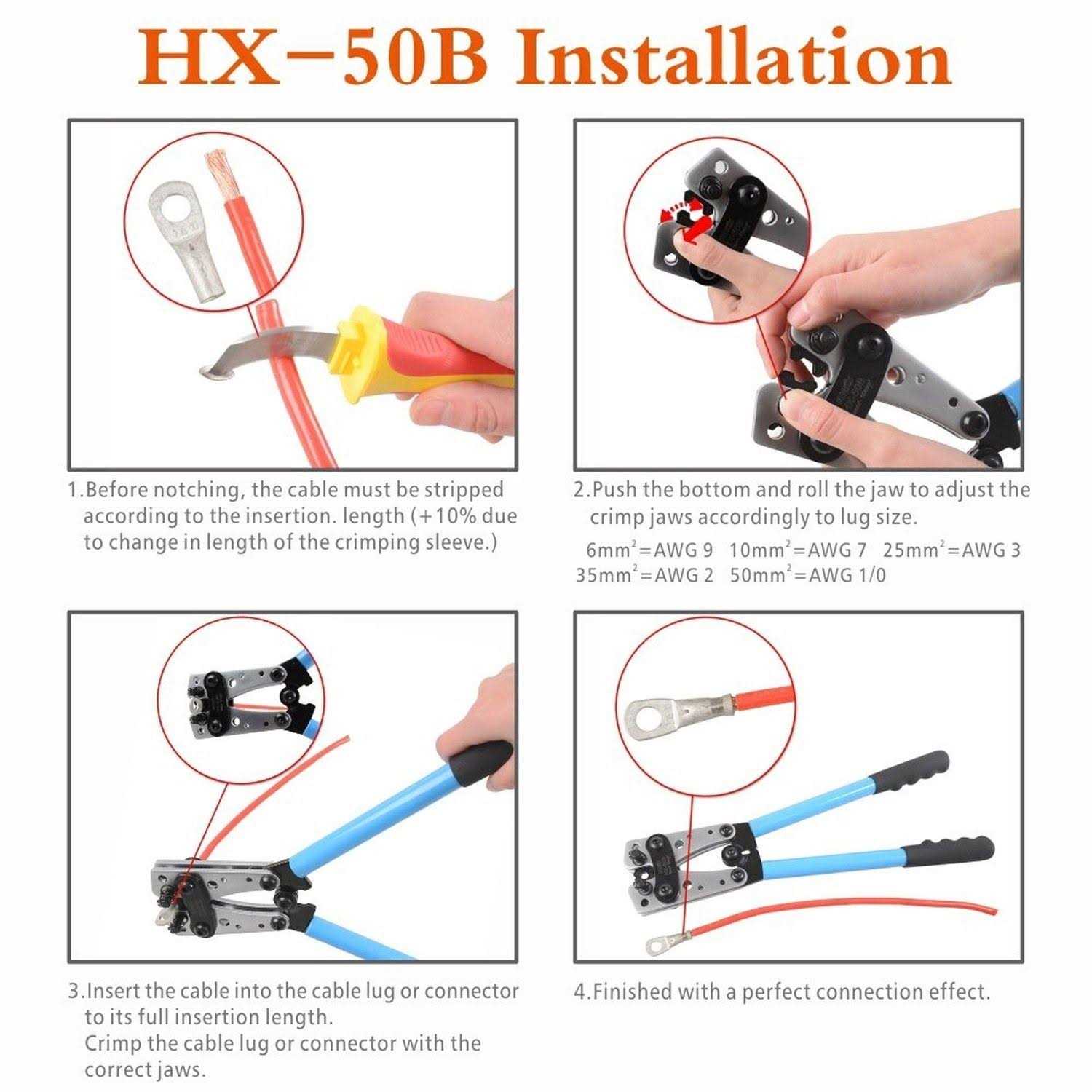 - Product upgradeNEW HX-50BI with 6 dies in AWG: 8,6,4,2,1,1/0,NOT IN METRIC.